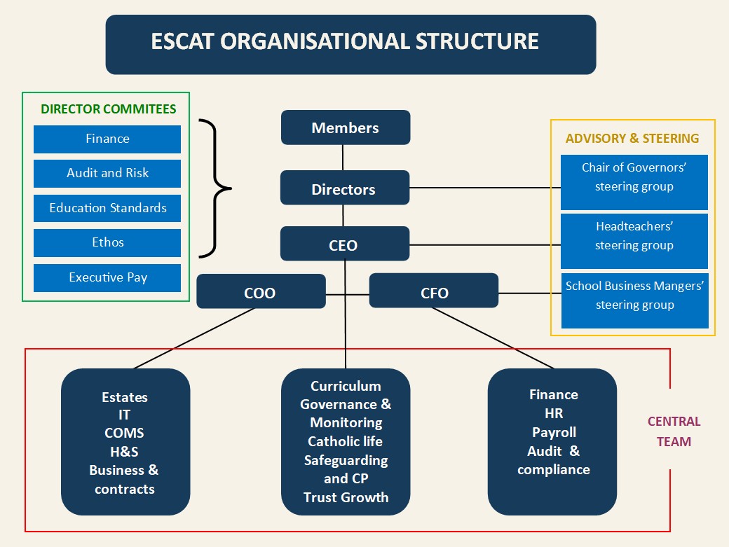 The Board is made up of Catholic volunteers, appointed by the Bishop of Portsmouth. We are ultimately responsible for the performance of the Trust as a whole, as well as for the nurturing of its Catholic Life evident within Trist Schools. The day-to-day strategic work of the schools remains the priority of the Local Governing Bodies (LGBs). The Board focuses on the strategic direction of the Trust; finances; policies and procedures where these need to be held in common across ESCAT; We are supported in our work by the Catholic Academies and Schools Office, and our meetings are regularly attended by the Chief Education Officer (CEO), Chief Finance Officer (CFO) and Headteachers from our schools.